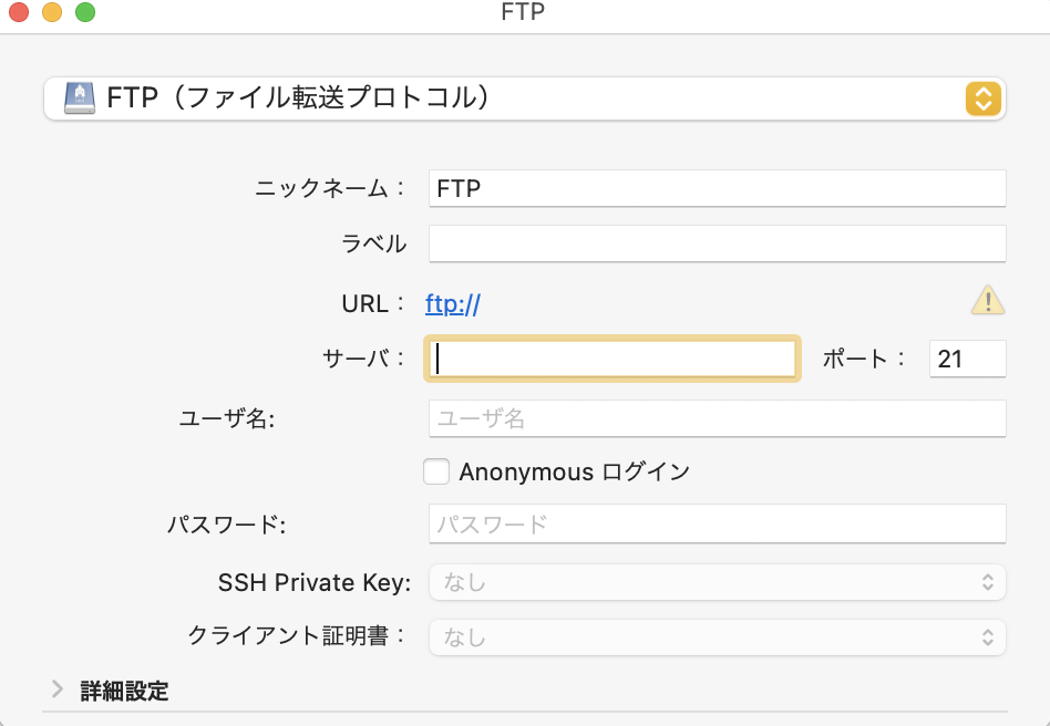 サーバーにフォルダを渡すFTPツールとして使うときは、基本的にSFTP(SSHを利用したFTP)を利用することになると思います。