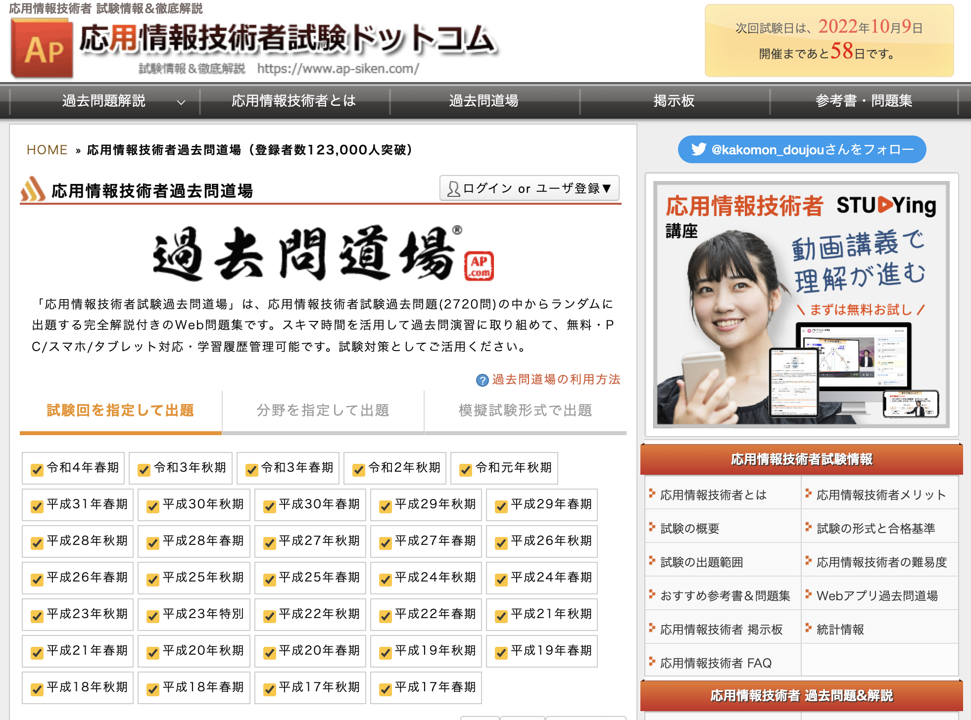勉強方法について、個人個人のやり方はあると思いますが過去問道場を押したいです。過去問道場では過去問、解説があり本番と環境が似ているので過去問道場で自分の実力を図りながら勉強することを薦めします。